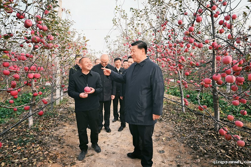 2022年10月26日至28日,中共中央总书记、国家主席、中央军委主席习近平在陕西省延安市、河南省安阳市考察。这是26日下午,习近平在延安市安塞区高桥镇南沟村苹果园同老乡们亲切交流。 新华社记者 燕雁/摄