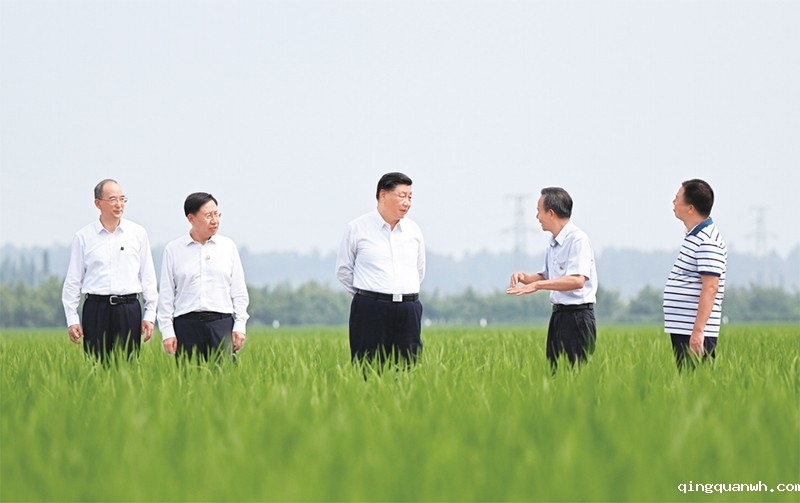 2022年6月8日,中共中央总书记、国家主席、中央军委主席习近平在四川考察。这是8日上午,习近平在眉山市东坡区太和镇永丰村高标准水稻种植基地考察,了解水稻试验育种和种植推广情况。 新华社记者 谢环驰/摄